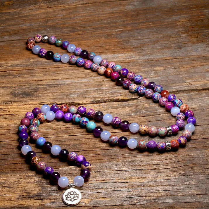 108 Purple Jasper & Amethyst Mala Bead Bracelet