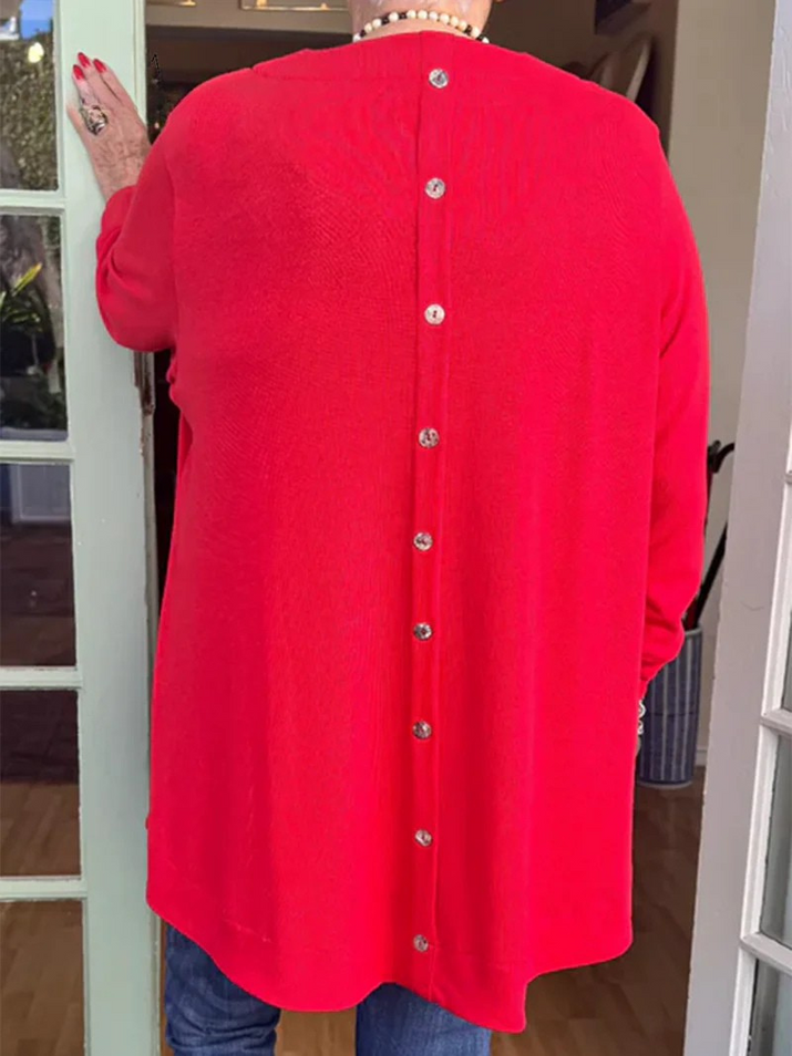 Crafted from soft, breathable fabric, this crew neck top combines timeless simplicity with a modern twist. The button-back detail adds an unexpected charm, making it versatile enough for both casual moments and polished occasions. Whether paired with trousers, skirts, or denim, it’s the piece you’ll keep reaching for.