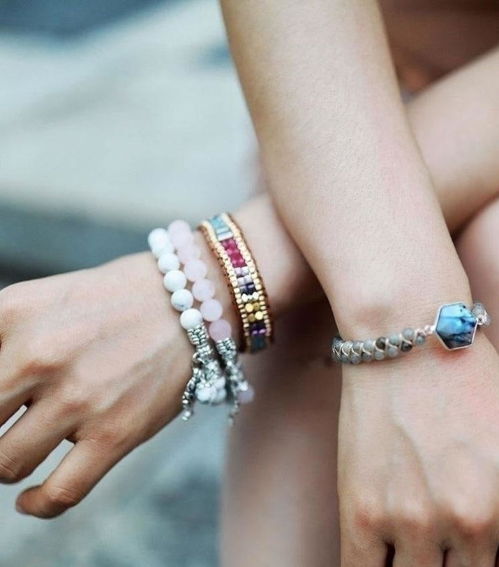"Such a peaceful bracelet. The colors are soft and soothing — I wear it every morning during meditation."