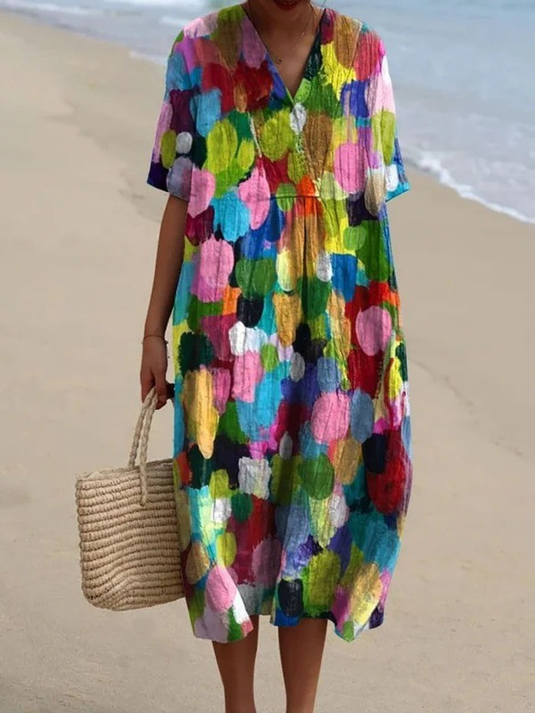 Women's Colorful Painting Art Print Casual Cotton And Linen Shirt